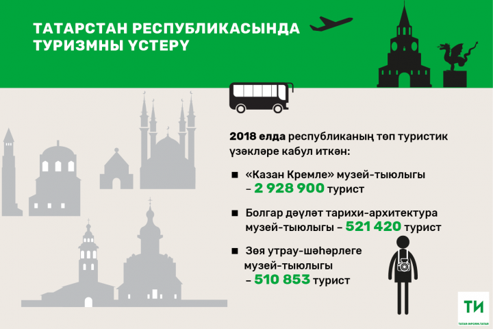 Үткән ел “Казан Кремле” музей-тыюлыгы белән 2,9 миллион турист танышкан. Татарстанга килгән туристларда аеруча кызыксыну уяткан икенче объект – Болгар дәүләт тарихи-архитектура музей-тыюлыгы. Ул Россия һәм чит илләрдән 521 мең 420 туристны кабул иткән.